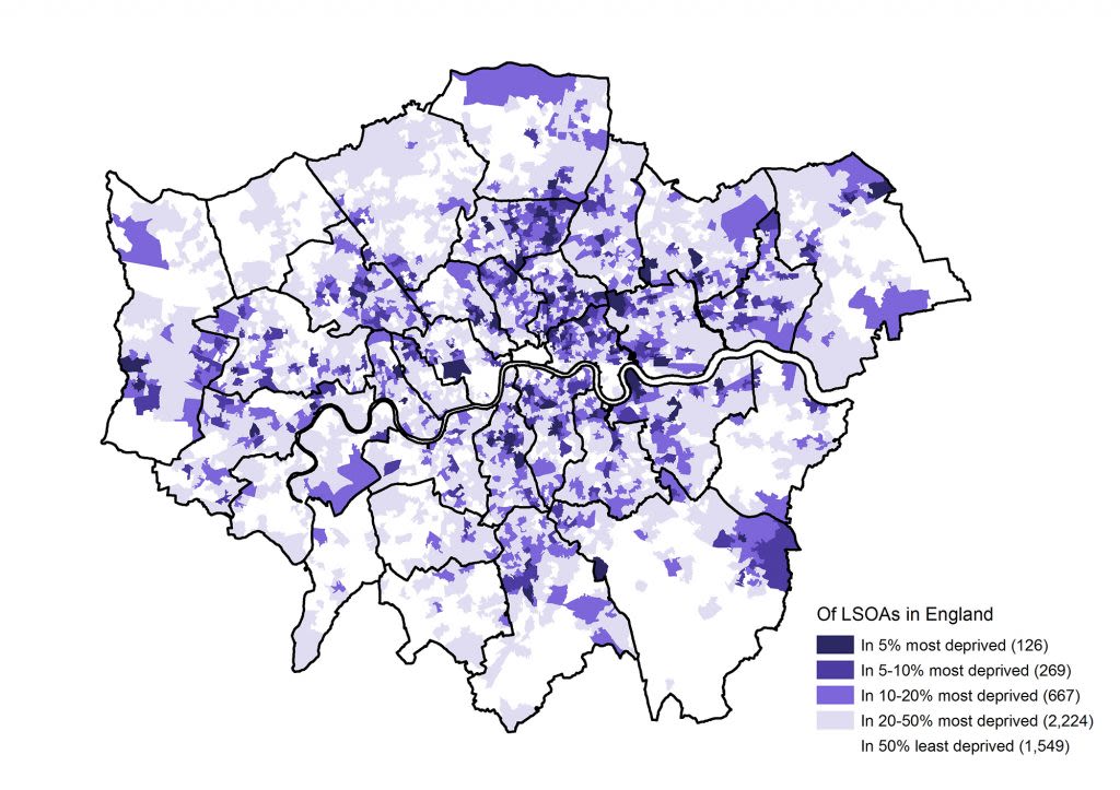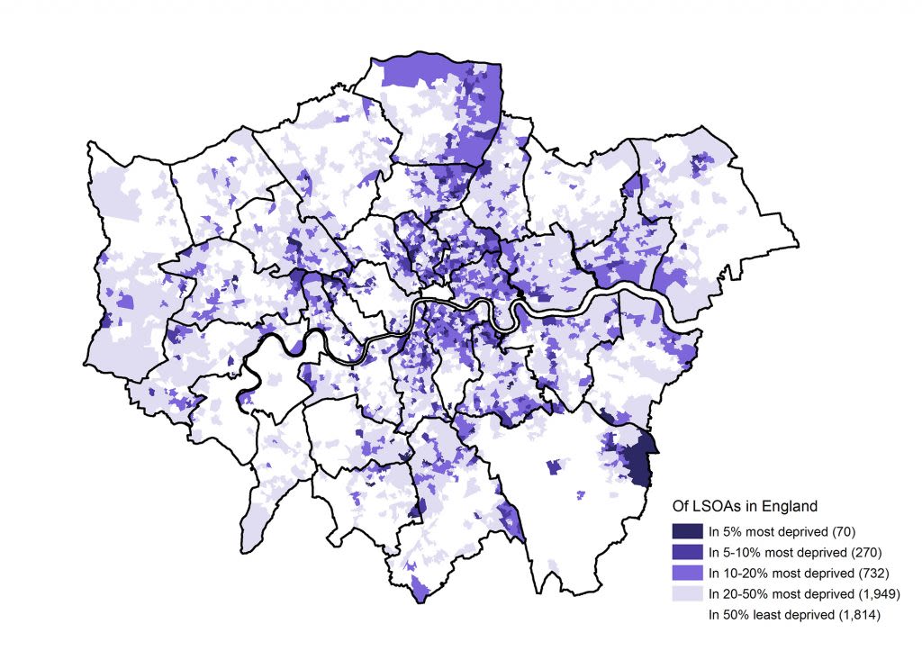 Income Deprivation Affecting Children Index of LSOAs (neighbourhoods) in London. Source: Indices of Deprivation 2019